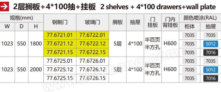 抽屜對開(kāi)鋼門(mén)儲物柜 77.6721.xx、77.6725.xx